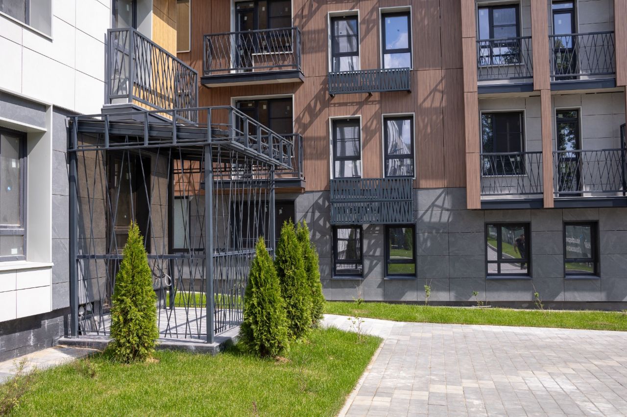 Квартиры на первых этажах дома №1 запроектированы с крытыми патио, а на последних этажах дома №2 — со вторым уровнем и личной террасой на кровле.